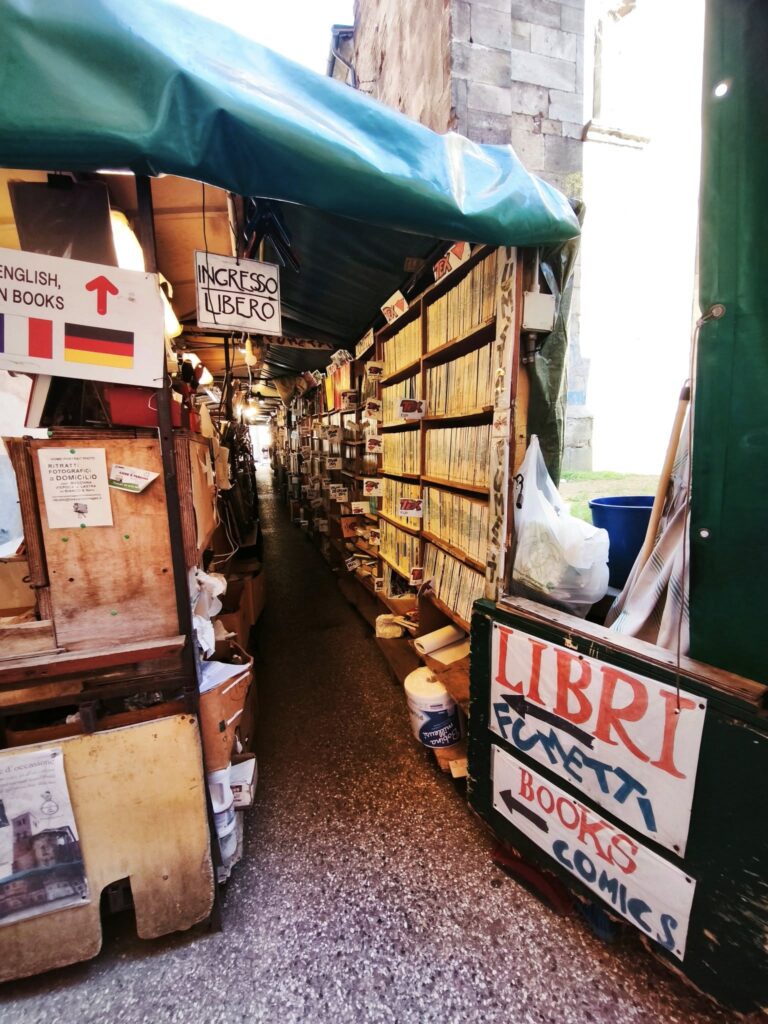 Nie pachniało tam ani pizzą, ani świeżo mieloną kawą, tylko stęchlizną i kwaśnym papierem. Mniam. Zobaczyłam bancarelle i przepadałam, bo za zakrętem objawiła mi się kontynuacja tych stoisk. A jak już wróciłam do żywych wpadłam na kolejną księgarnię w historycznych okolicznościach pomieszczenia.