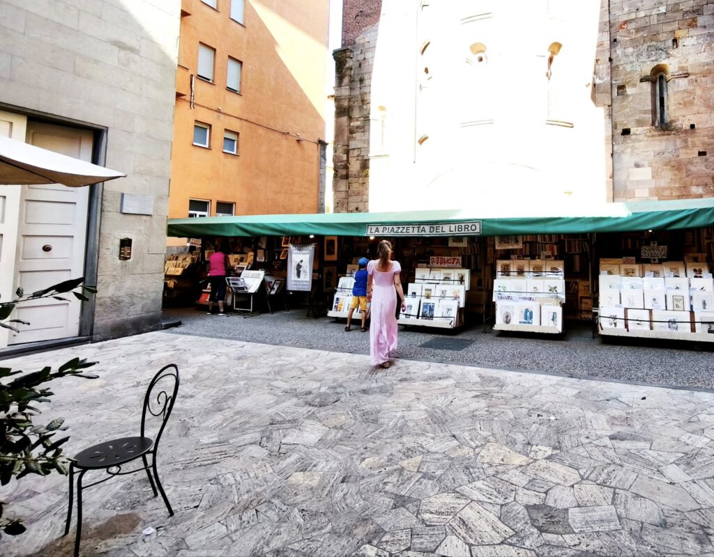 Bibliotekarskie nogi pospołu z bibliofilskim sercem zaprowadziły mnie do najpiękniejszego miejsca w Lucce, a Porta San Pietro sprzyjała temu okazaniu. Już, już miałam wchodzić do całkiem nowej księgarni Mondadori, kiedy za arkadami i stolikami, przy których w gęstym upale zastygli turyści podłączeni gremialnie do Aperola, zauważyłam ten absolutny cud świata.