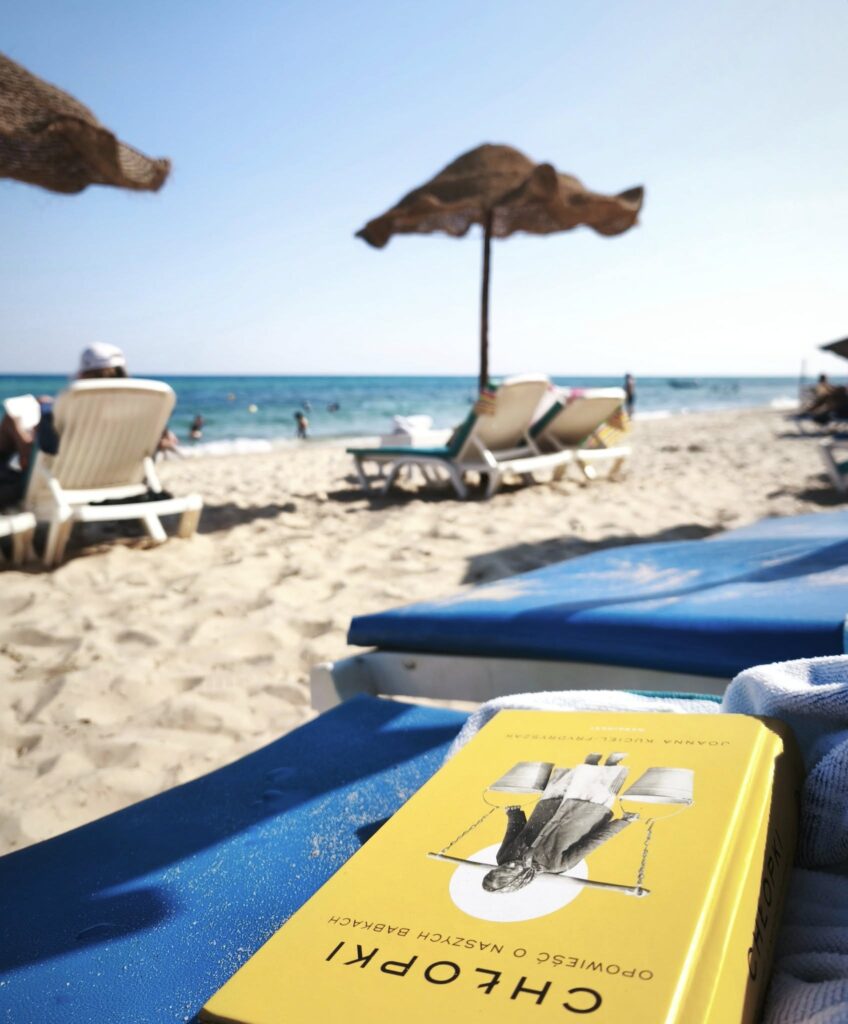 Daleko od domu tylko niektóre rzeczy przypominają (pięknie) człowiekowi, że można usiąść i pisać, inne sprzyjają słodkiemu zapomnieniu o codzienności. No, chyba że na plaży trafi się nagle charakterystyczna żółta okładka do rozpoznania z każdej odległości. Myślę wtedy, że mimo różnych przeciwności i zawirowań z wydawcą Joanna Kuciel-Frydryszak wypracowała sobie doskonałą markę.