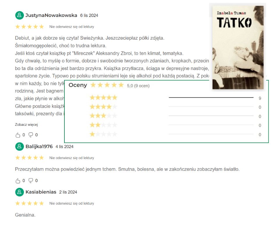 I tak, „Tatkę” możecie czytać na Legimi, a także kupić jako e-book – adresy zbiorczo tutaj: