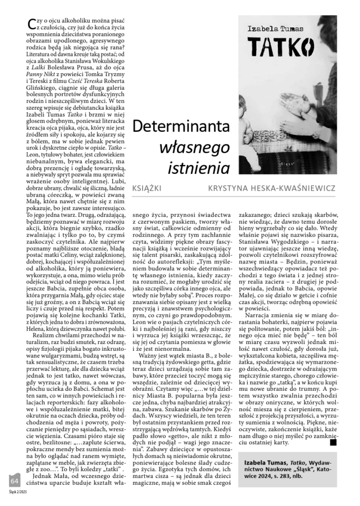 Cały tekst „Determinanta własnego istnienia” dostępny jest w Miesięczniku społeczno-kulturalnym „Śląsk” 2/2025.