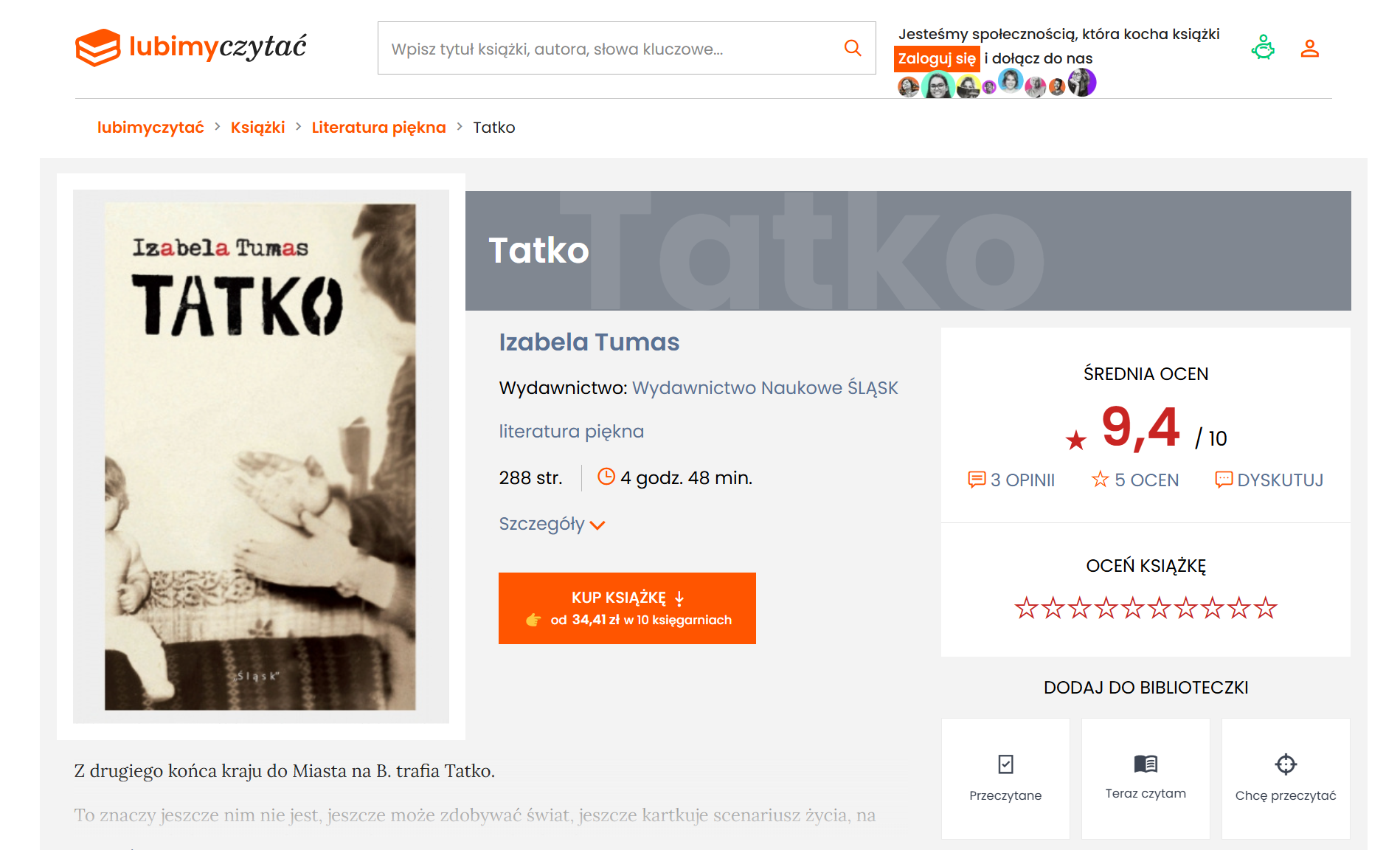 Na lubimyczytac.pl jeszcze mało opinii (mniej więcej tyle, ile obecnie egzemplarzy „Tatki” do kupienia 😉), ale z czasem pewnie to też się zmieni.