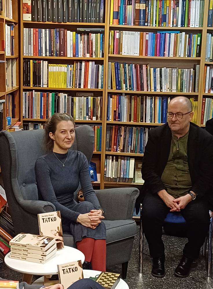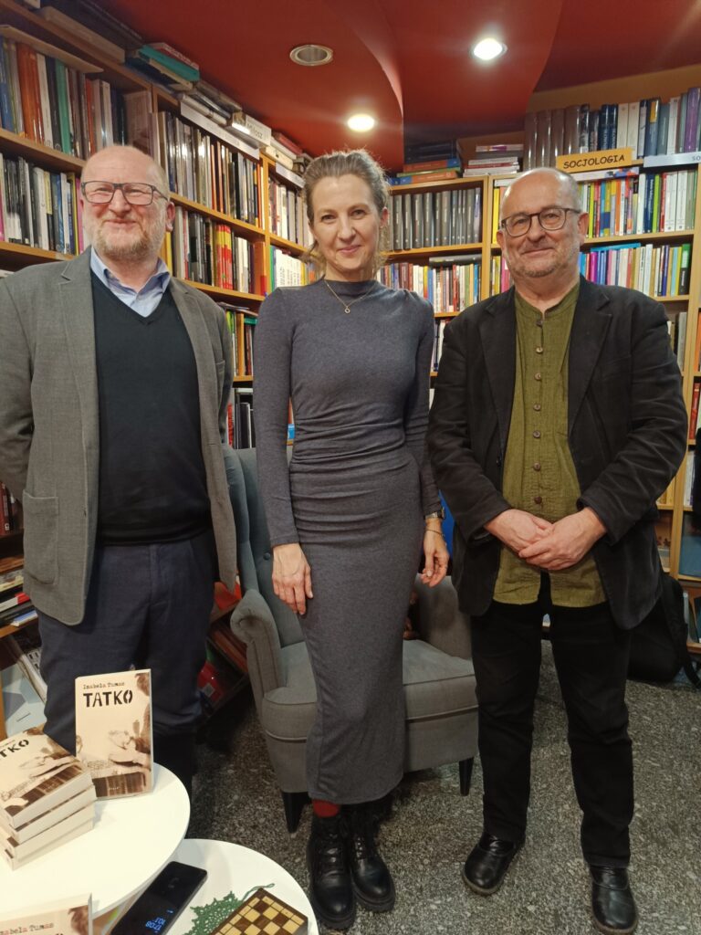 Usłyszałam o „Tatce” dużo dobrych słów. Komplementy o tej książce ciągle wydają mi się nierzeczywiste – głosy te zdają się dobiegać do mnie jakby zza ściany. Nawet nie umiem porządnie za nie podziękować. Księgarzom z Księgarni Liber jestem winna głębokie ukłony za promowanie „Tatki” i reklamę tej książki wśród przyjaciół – pracowników naukowych UŚ. Wynikiem ich zaangażowania było m.in. to spotkanie. Bardzo dziękuję prof. Mirosławowi Pirógowi za prowadzenie – to był dla mnie zaszczyt. Cieszę się, że w spotkaniu uczestniczył też prof. Krzysztof Łęcki – jego opowieści były tam po prostu potrzebne.
